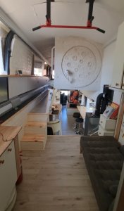 echo "The complete conversion took around 10 months. Working alone for approximately 30 hours each week, I handled every part of the project — from planning and construction to the integration of advanced smart technology.